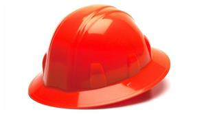SL Series Full Brim Hard Hat - Hi Vis Orange-Full Brim 4 Pt Ratchet Suspension - Shell constructed from High Density Polyethylene. Rain trough on sides and back of helmet channel moisture away. Soft brow pad is replaceable and washable. Low profile design. Universal accessory slots fit cap mounted ear muffs and chin straps.