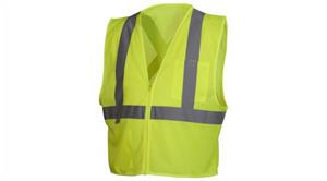 Safety Vest - Hi-Vis Lime Vest with Reflective Tape - Size Extra Large - Hi-Vis lightweight polyester mesh material. 2'' silver reflective material. Zipper front closure Chest pocket with hook and loop closure. Deep and wide inside pocket.