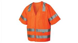 Safety Vest - Hi-Vis Orange - Size 4X Large - Lightweight polester mesh material with sleeves. 2, 2-inch silver reflective material around waist. 2, 2-inch silver reflective material applied vertically over shoulders. Zipper front closure. 5 pockets. Individually packaged. 50 vests per case.