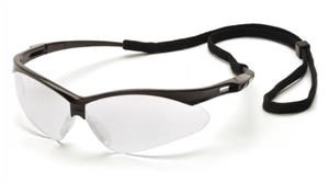 PMXTREME - Black Frame/Clear Lens with Black Cord - Includes black lanyard cord with rubber tips for extra security while wearing. Ventilated, straight-back flexible temples provide cool, pressure free fit. Rubber, temple tips keep eyewear secure for the active worker. 9 base curve polycarbonate lens provides maximum vision protection.