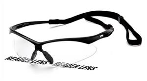 PMXTREME Readers - Black Frame/Clear +2.0 Reader Lens with Black Cord - Includes black lanyard cord with rubber tips for extra security while wearing. Ventilated, straight-back flexible temples provide cool, pressure free fit. Rubber, temple tips keep eyewear secure for the active worker. 9 base curve polycarbonate lens provides maximum vision protection. Lens insert is strategically placed out of user's direct line of vision.