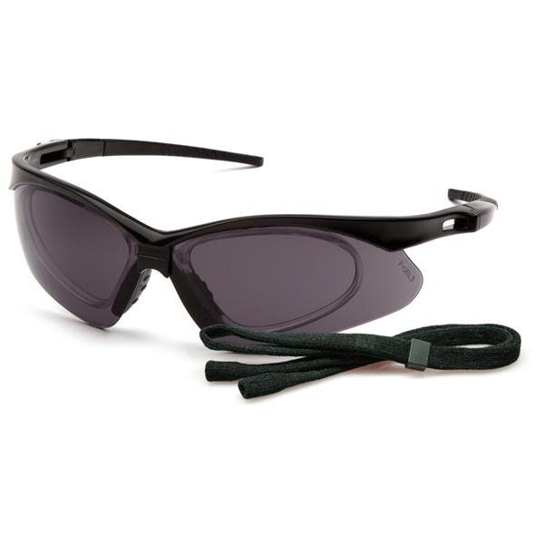 PMXTREME - Black Frame/ Gray anti-fog lens with RX insert - Built-in rubber nose piece. Rubber temple tips. Ventilated, straight-back temples. Includes RX insert which accomodates -3.0 to +3.0 prescription lenses. Includes black lanyard cord.