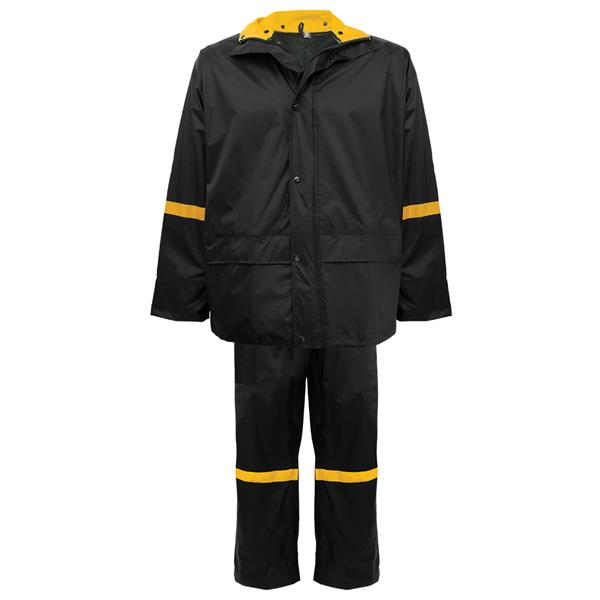 3X-Large Black with Yellow Three Piece Premium Nylon/PVC Black Rain Suit