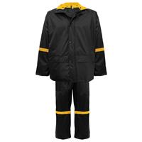 Large Black with Yellow Three Piece Premium Nylon/PVC Black Rain Suit