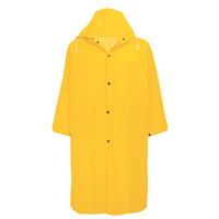 49 in. long raincoat, 0.35 mm PVC, yellow with detachable hood, button closure and clear name badge holder.