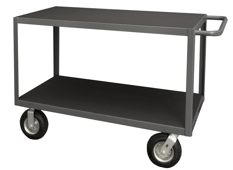 Rolling Instrument Cart with 8" x 3" Pneumatic casters, (2) rigid and (2) swivel, 2 shelves, Non-slip black vinyl matting on both shelves and tubular push handle, gray