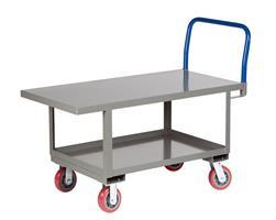 2000 lbs. capacity. Comfortable 12 gauge raised deck reduces bending and back strain. Removable push bar handle extends 14" above the deck.
