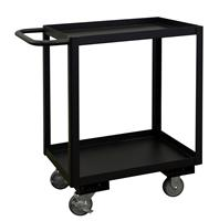 Rolling Service Cart with 4" x 1-1/4" Polyurethane casters, (2) rigid, (2) swivel with side brakes, 2 shelves, all 1-1/2" lips up with tubular push handle, black