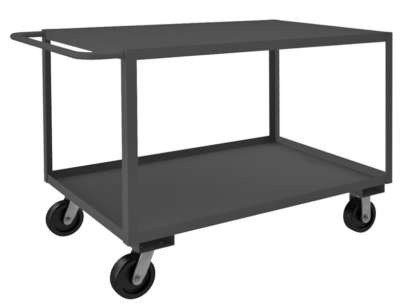 Rolling Service Cart with 6" x 2" Phenolic casters, (2) rigid, (2) swivel, 2 shelves, bottom shelf has 1-1/2" lips up with tubular push handle, gray