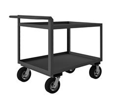 Rolling Service Cart with 8" x 3" Pneumatic casters, (2) rigid, (2) swivel, 2 shelves, 1-1/2" lips up with raised tubular push handle, gray