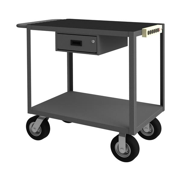 Rolling Instrument Cart with 5" x 1-1/4" Polyurethane casters, (2) rigid and (2) swivel with side breaks, 1 drawer, electrical strip and tubular push handle, gray