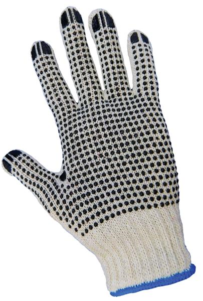 These standard weight natural colored polyester/cotton gloves are a perfect general purpose glove. They feature PVC dots on both sides which provide good grip.
