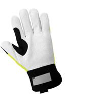 These gloves feature a padded back with TPR impact protection, contrasting superior grade white cotton corded palm with positive grip enhancement, high-visibility yellow/green back and a reinforced thumb crotch. These gloves are ideal for petrochemical, mining, construction, demolition, manufacturing, and fabrication
