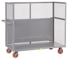 3600 lbs. capacity. 3-sided truck converts in seconds. Upper shelf drops down and out of the way to make room for extra large items, or it can be removed completely. Sides extend 48" above deck, with drop-shelf positioned 30" above deck.