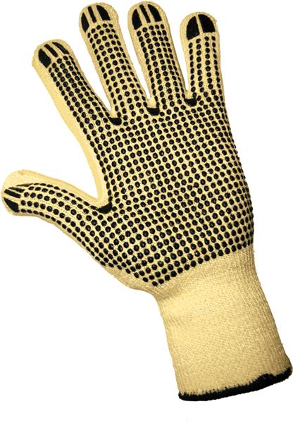 Samurai Glove - These gloves are constructed of heavy weight TuffKut liner, a revolutionary duracore spinning process and an innovation silicon reinforced fiber that brings exceptionally high cut resistance along with incredible dexterity and tactile sensitivity. They are yellow in color with black PVC dots on both sides for better grip plus they have a reinforced thumb crotch for extra protection and wear. TuffKut has comparable heat qualities to aramid fiber material and is bleachable, will not degrade in sunlight.