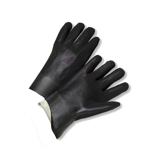 Black PVC on a comfortable jersey lining, which offers moderate insulation and a smooth finish for good grip in dry conditions, abrasion resistant. Also, cotton knit interlock lining wicks away moisture and keeps hands cool and dry