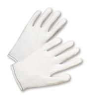 Comfortable and form fitting stretch nylon gloves with color-coded hems for easy size identification
