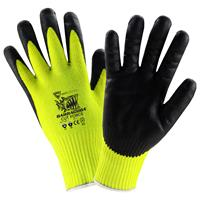 Medium Hi-Vis Green Cut Resistant Black Microfoam Coated Gloves