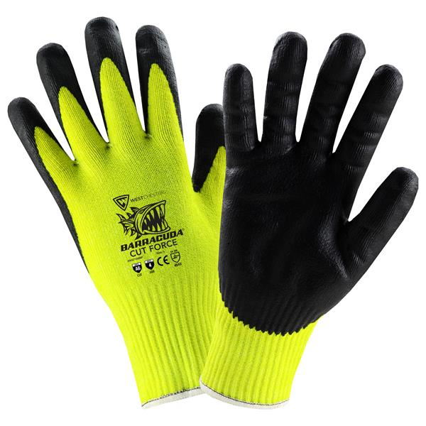 The Barracuda Cut Force (HVG710SNF) is designed to prevent injuries from cuts. It is made from engineered yarn and Lycra to provide serious cut protection. In addition, this glove provides a high-contrast, hi vis green on the back of hand for enhanced visibility and safety. A foam nitrile palm enhances tactility and grip.