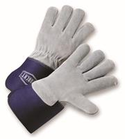 Large Gray/Navy Premium Heavy Split Cowhide Palm Full Leather Back Gloves