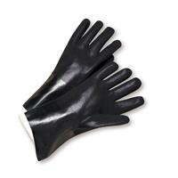 Large 12 inch Black Standard Rough Grip PVC Jersey Lined Gloves