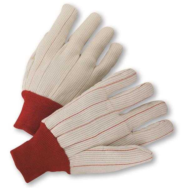 Large Natural White Cotton Corded Double Palm Gloves W/ Red Knit Wrist