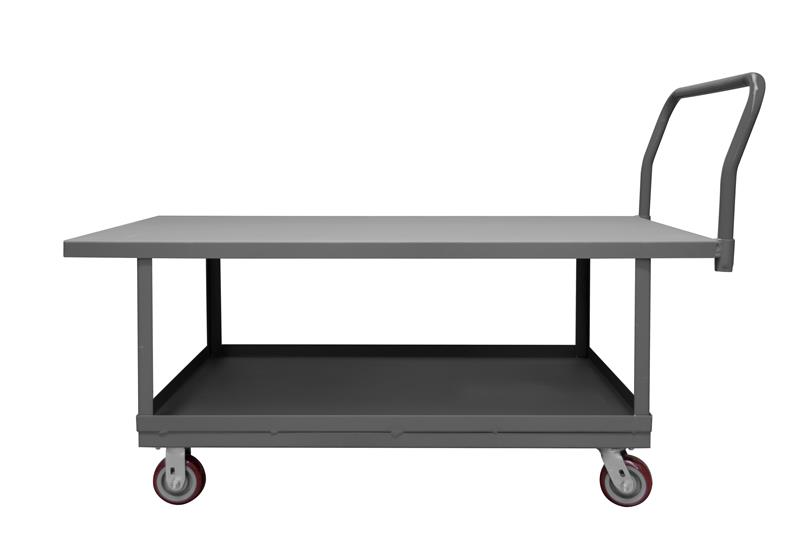 2 Deck Platform Truck with 5" X 1-1/4" Polyurethane casters, (2) rigid and (2) swivel with removable, tubular offset push handle, gray
