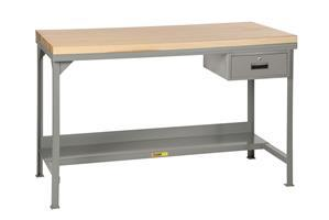 3000 lbs. capacity. Butcher Block top is 1-3/4" thick, helps deaden sound, absorbs impact. Replaceable top is attached to an all-welded steel frame.