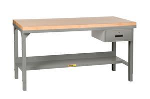 30 in. x 60 in. Adjustable Height 1-Drawer Welded Steel Workbench with Butcher Block Top