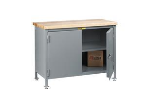 Up to 3,000 lbs. capacity. 1-3/4" butcher block top provides a durable, yet forgiving work surface. The non-conductive butcher block top is securely attached to the all-welded, heavy-duty, 14 gauge steel cabinet. 26" high interior cabinet clearance.