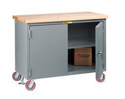 Up to 3,000 lbs. capacity. 1-3/4" butcher block top provides a durable, yet forgiving work surface. The non-conductive butcher block top is securely attached to the all-welded, heavy-duty, 14 gauge steel cabinet. 26" high interior cabinet clearance.