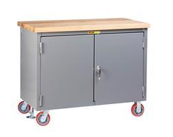 Up to 3,000 lbs. capacity. 1-3/4" butcher block top provides a durable, yet forgiving work surface. The non-conductive butcher block top is securely attached to the all-welded, heavy-duty, 14 gauge steel cabinet. 26" high interior cabinet clearance.