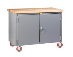 Up to 3,000 lbs. capacity. 1-3/4" butcher block top provides a durable, yet forgiving work surface. The non-conductive butcher block top is securely attached to the all-welded, heavy-duty, 14 gauge steel cabinet. 26" high interior cabinet clearance.